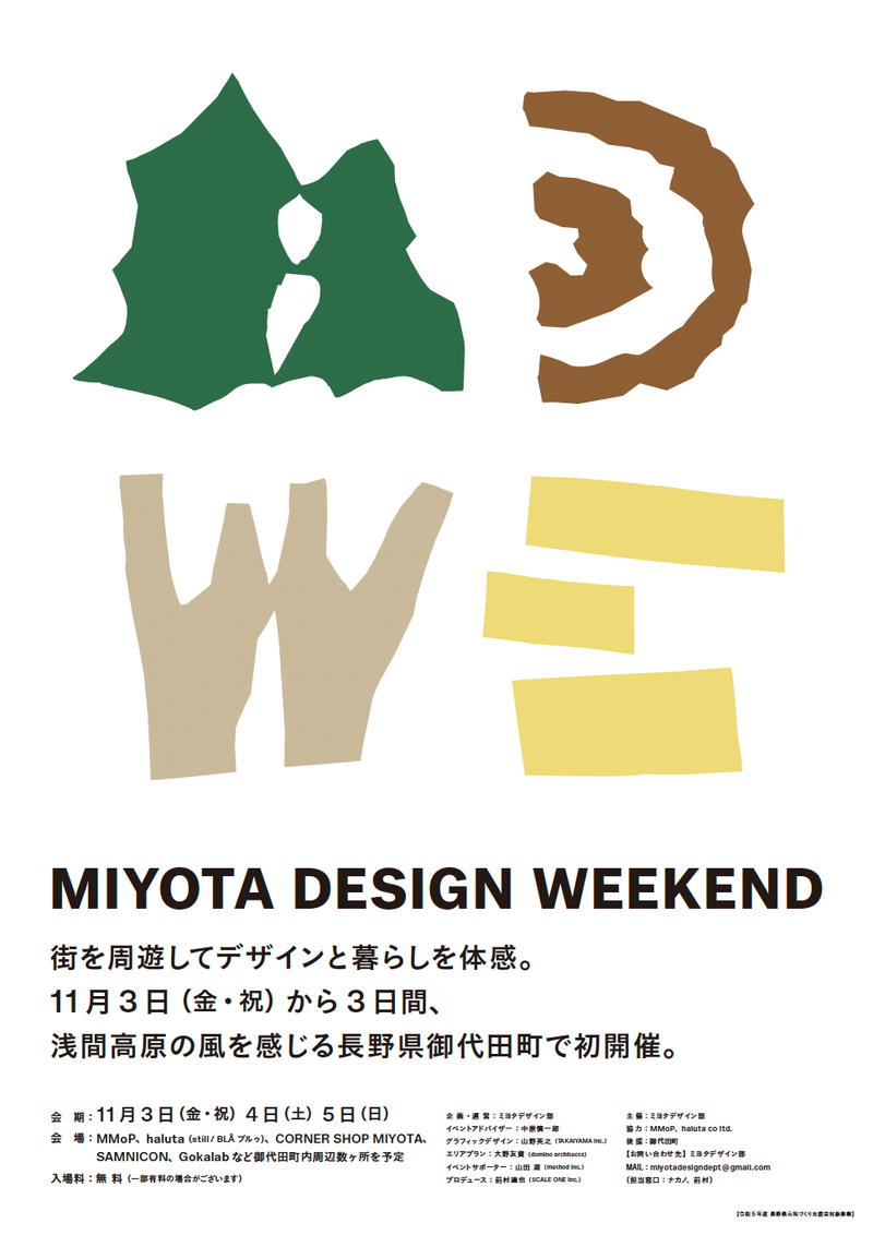 場所 MMoP、haluta ( still / BLÅ ブルゥ)、カネト駅前ビル、CORNER SHOP MIYOTA、Gokalab、SAMNICONなど御代田町内数ヶ所を予定