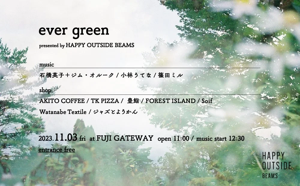 自然環境にマッチしたアンビエントミュージックと山梨県を中心とした食材や飲料を楽しめるイベント。音楽は、日本を拠点に世界を舞台に活動する音楽家・石橋英子とジムオルーク、スチールパン奏者・小林うてなによるパフォーマンス、yahyelの篠田ミルによるアンビエントセットが奏でられる。山梨県産の飲食の他、地元に愛され、他県からも注目を集める個性豊かな個店が出店し、音楽に彩りを添える。
