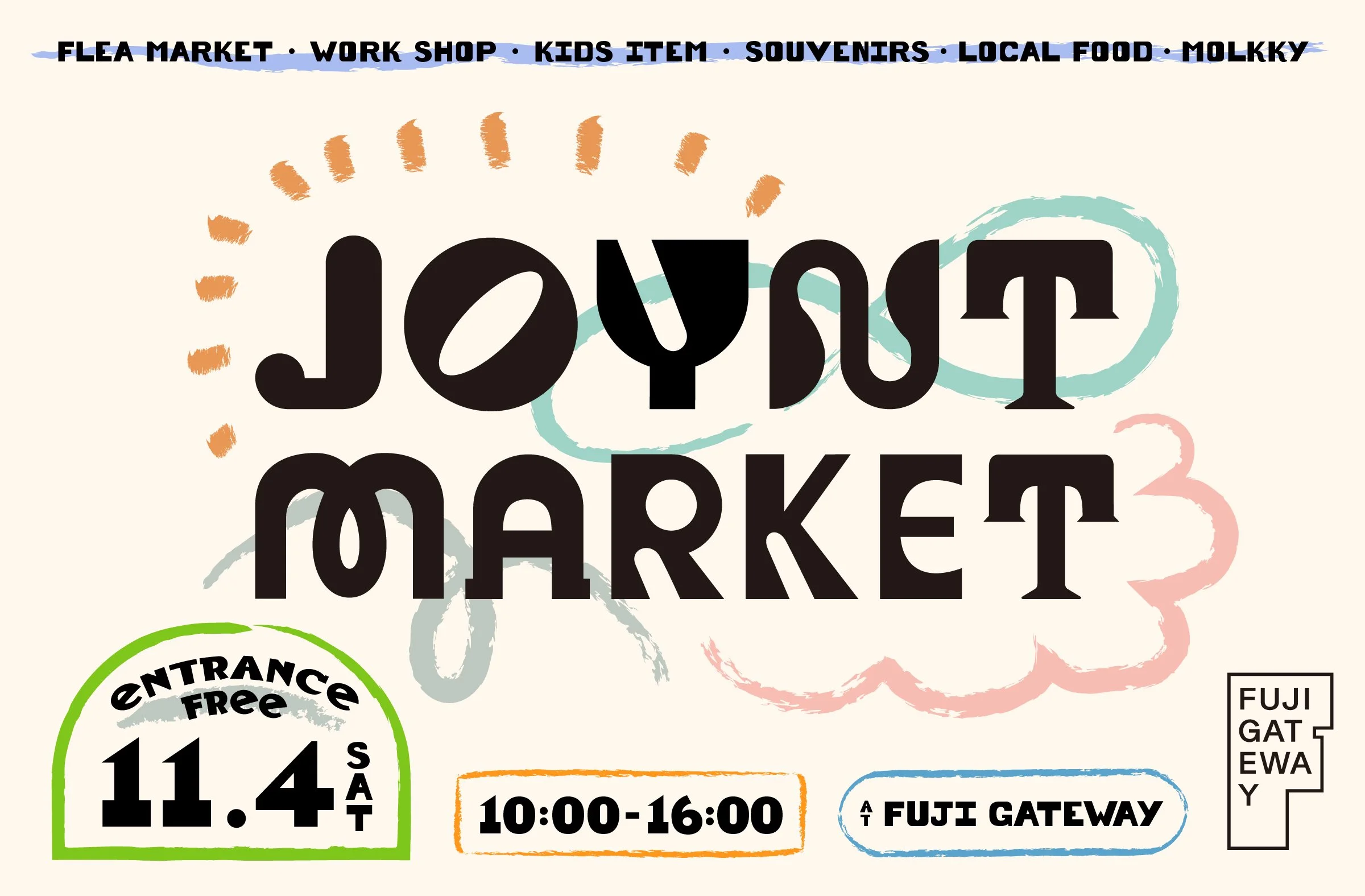 「FUJI GATEWAY」が主催する野外マーケットイベントの第二弾。イベントのテーマに “KIDS”を掲げ、キッズウエア・外遊びグッズの販売や、親子で楽しめる自然ワークショップ、モルック体験などのワークショップ、山梨県の魅力たっぷりなスーベニアショップに、美味しい飲食店など、約20ショップが一日限定で集う。