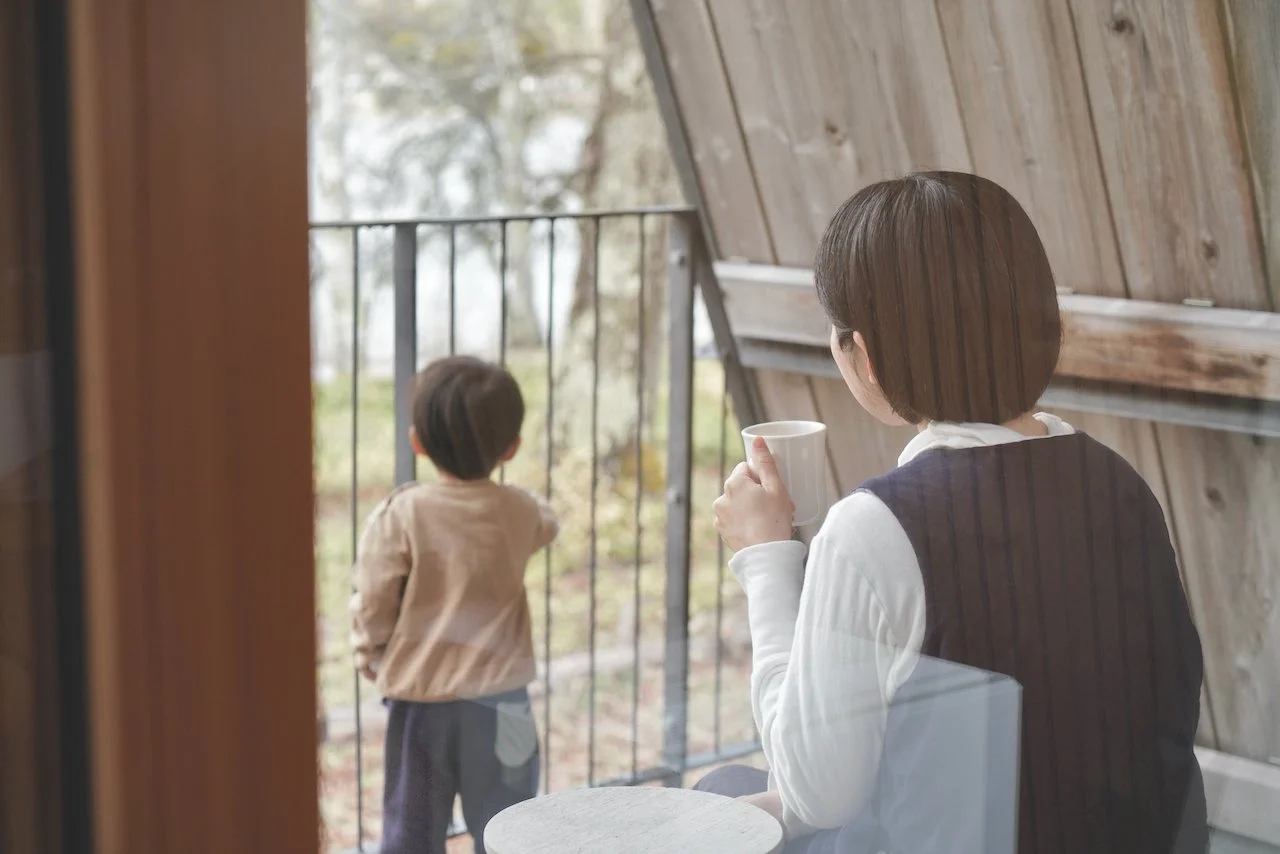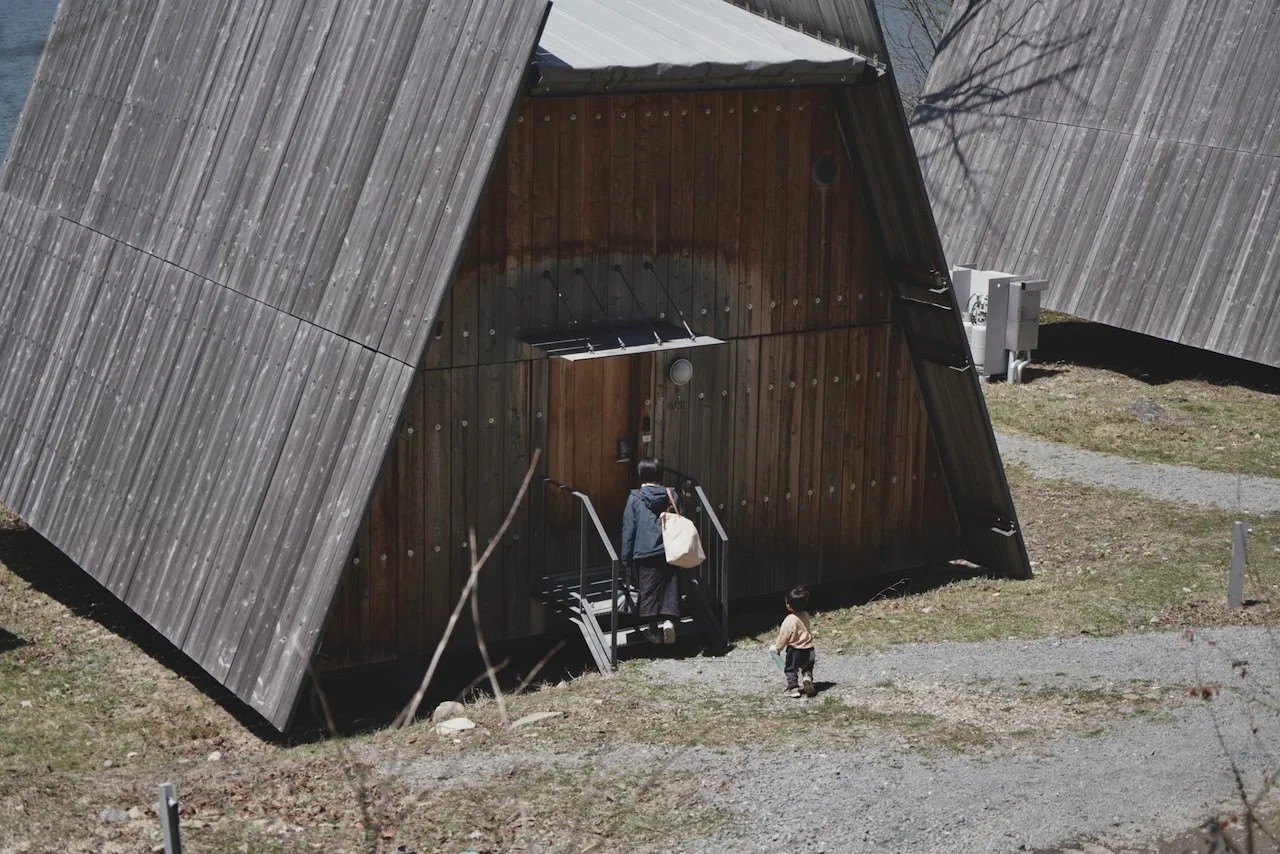 湖のほとり、歩いてすぐの場所に佇む「SANU CABIN BEE」に、妻と2歳の息子とともに宿泊する。