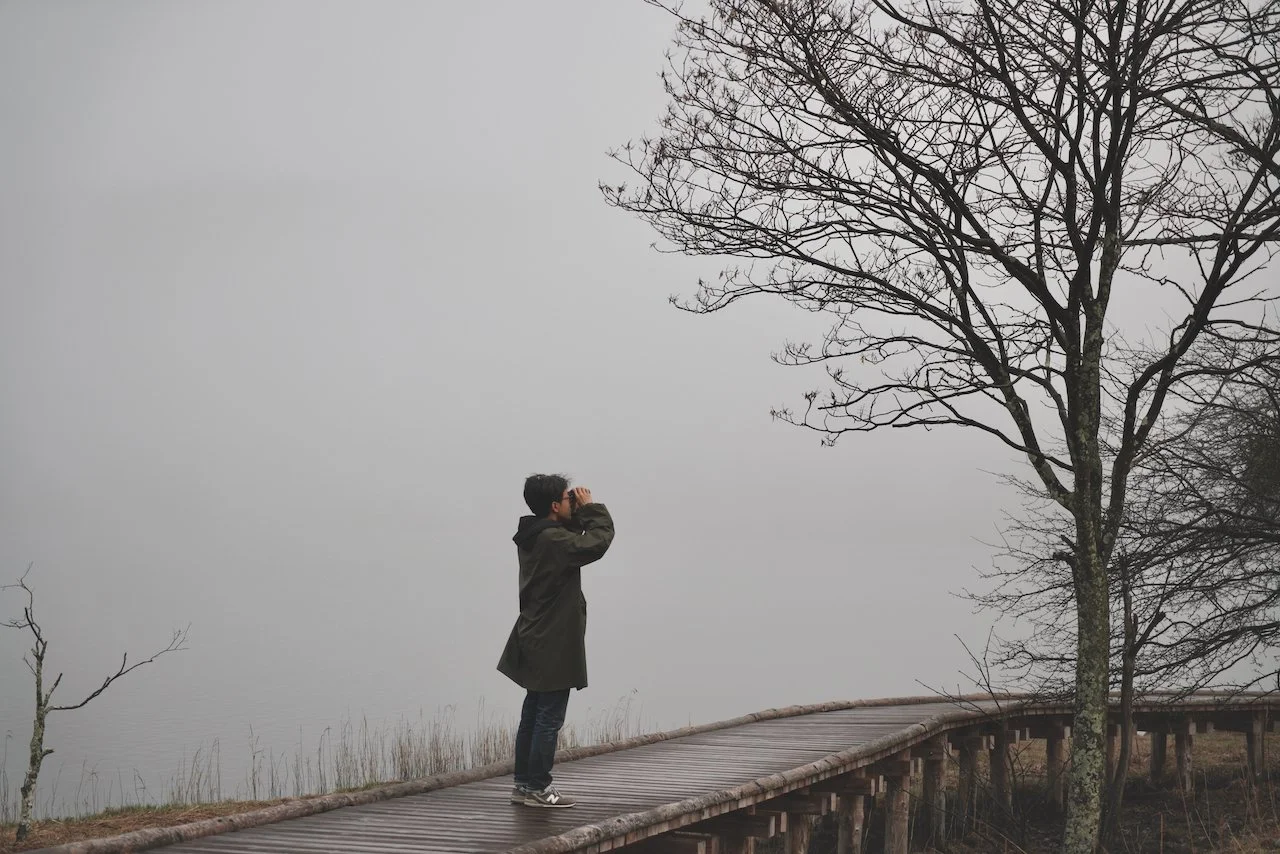 まだ眠る家族を起こさぬようにと、家から持参した双眼鏡を片手に昨日の遊歩道へ。