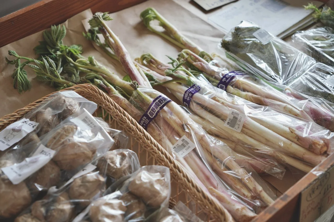 ならべられた野菜や山菜からは、そのときどきの季節が感じられる。SANU 2nd Homeにはキッチンが完備されているので、今夜は手ごねハンバーグを作ることにして、食材や調味料を手に入れた。