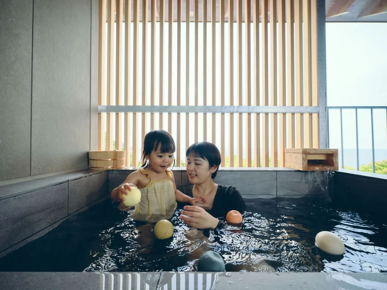 2025年夏にオープンしたばかりの伊豆1stには、貸切で利用できる温泉とサウナがあります。