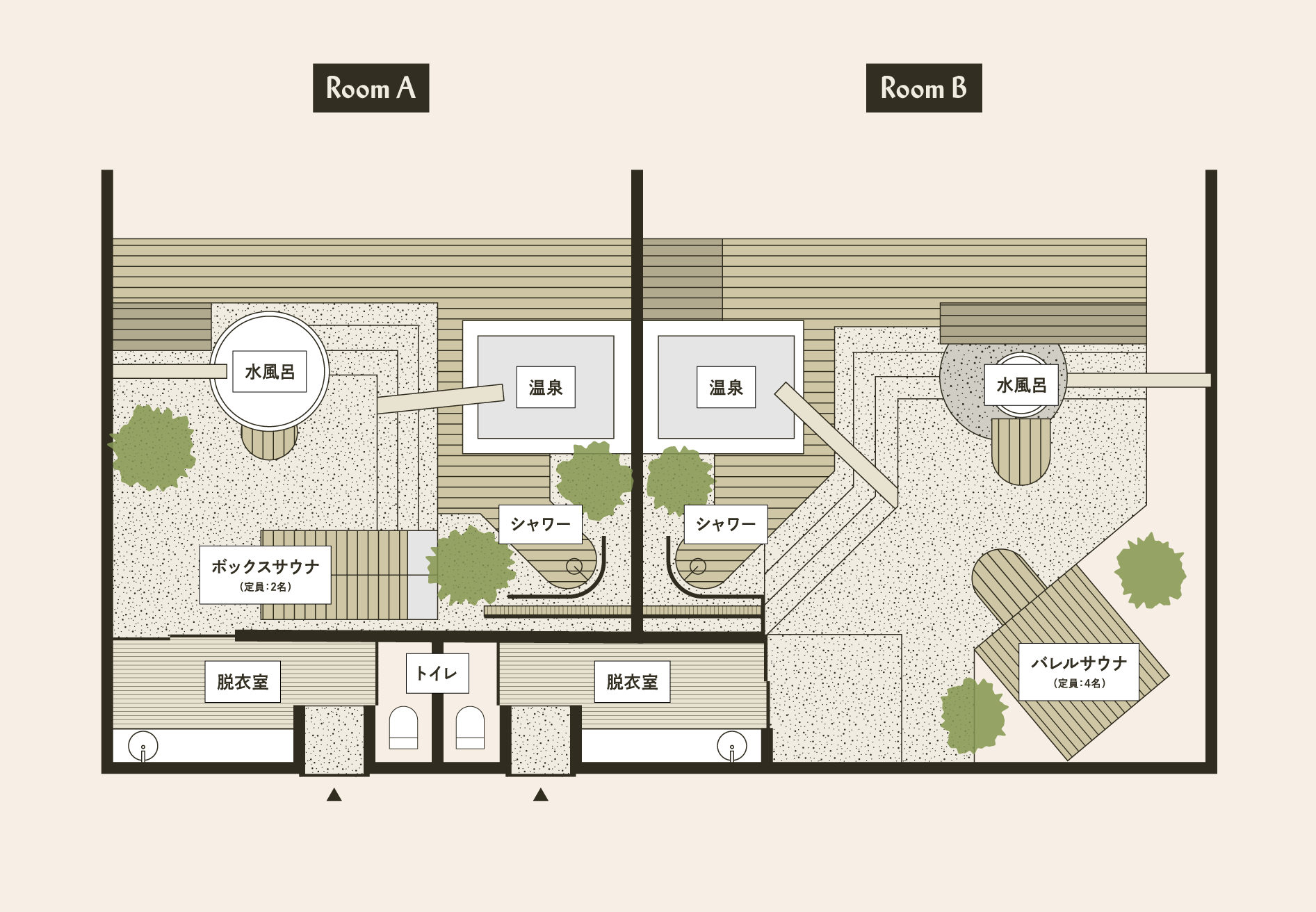 露天風呂、サウナ/水風呂、シャワー、脱衣室、トイレ