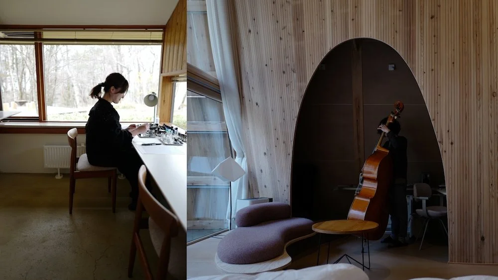 Renovation Series・Creaでお仕事をされる純子さん、SANU Cabinで楽器を練習する勝博さん