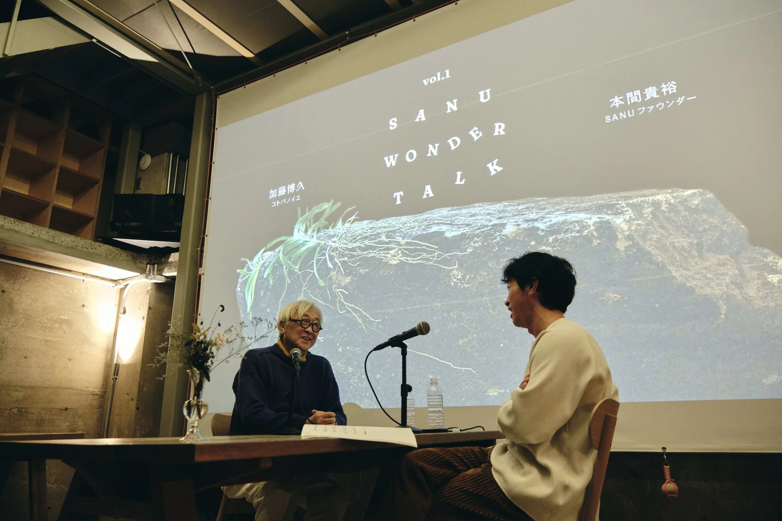 SANU NOWHEREで開催されているトークイベント〈SANU WONDER TALK〉のPodcast配信がスタートしました。第1回は『本と自然と“WONDER”のあいだで』をテーマに、BOOKS +コトバノイエの加藤博久さんをお迎えしています。